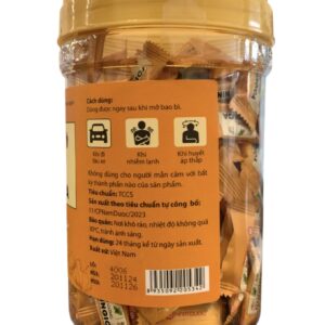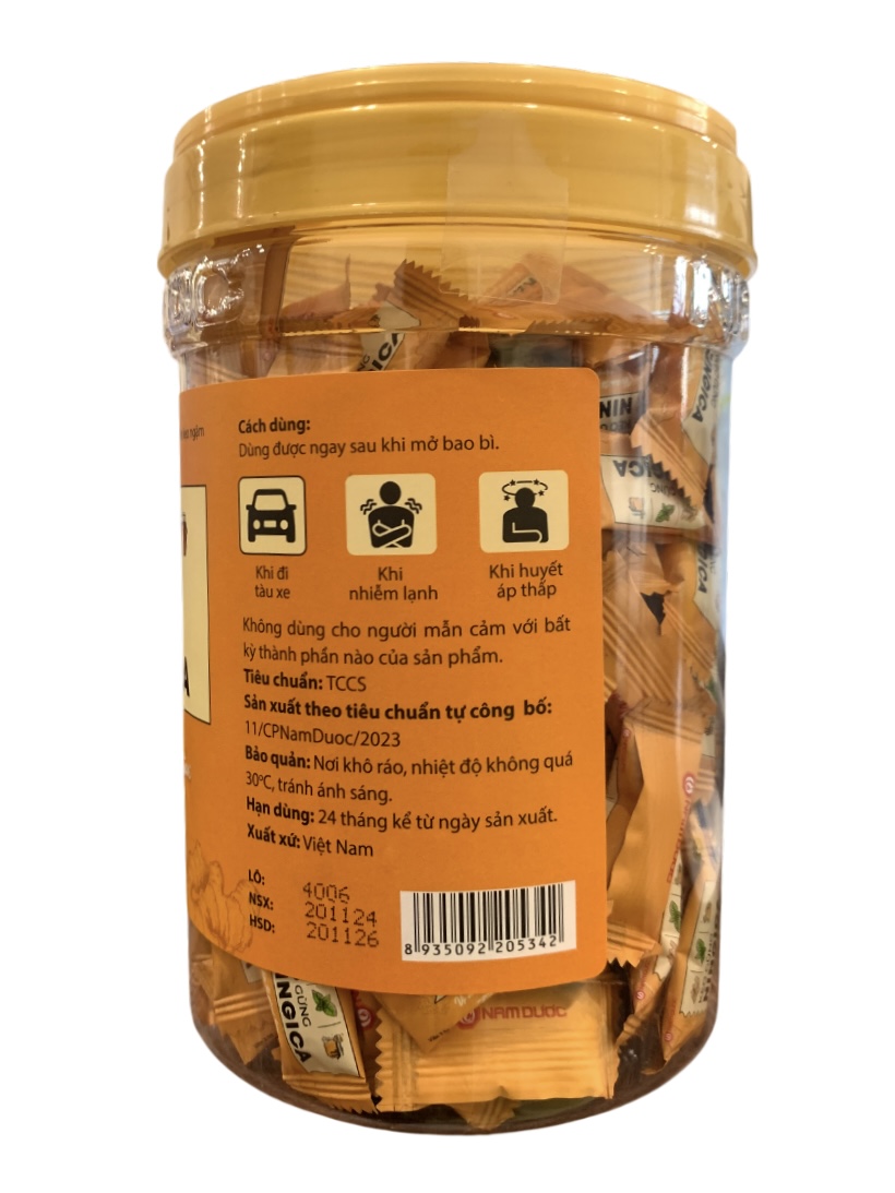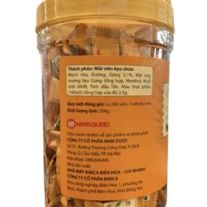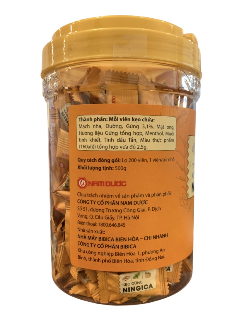 Mạch nha, đường, gừng 3,1%, mật ong, hương liệu Gừng tổng hợp, menthol, muối tinh khiết, tinh dầu tần, màu thực phẩm (160a(i)) tổng hợp vừa đủ 2.5g