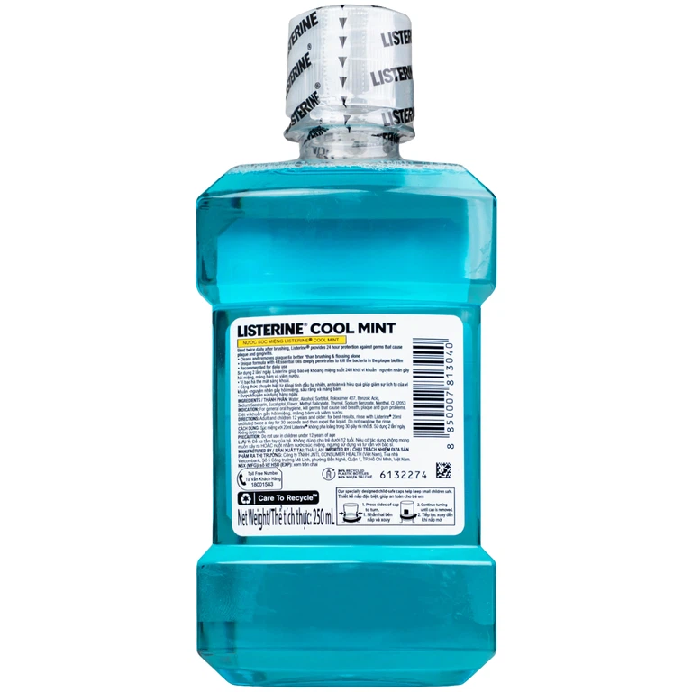 Nước súc miệng Listerine Cool Mint diệt vi khuẩn gây hôi miệng, mảng bám và viêm nướu.