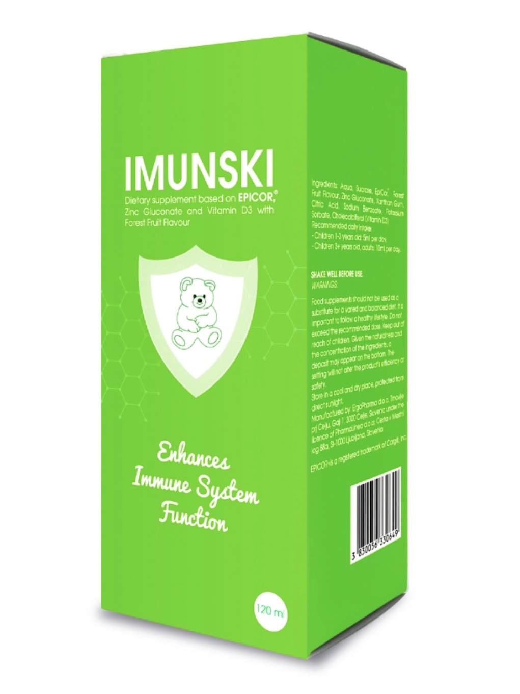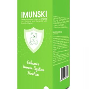 IMUNSKI hỗ trợ tăng cường sức đề kháng, với thành phần đột phá thế hệ mới EpiCor® – một sản phẩm lên men được chứng minh lâm sàng để hỗ trợ sức khỏe miễn dịch và đường ruột. Ngoài ra còn bổ sung vitamin D3 dạng vi nang và kẽm. Sản phẩm dành cho trẻ em, người lớn sức đề kháng kém, người bị cảm lạnh, cảm cúm cần tăng cường sức đề kháng.
