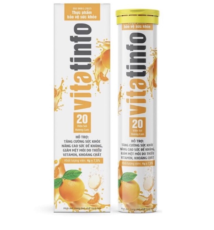 Phụ liệu: Natri hydrocarbonat, acid citric, đường kính, glucose, PVP, PEG, idacol sunset yellow, tartrazin, hương cam, Acesulfame, vừa đủ 02 viên nén sủi bọt.