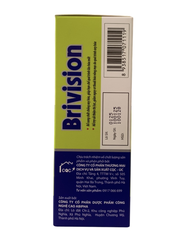 Viên uống Brivision là thực phẩm chức năng có tác dụng, bổ sung chất chống oxy hóa, giúp hạn chế quá trình lão hóa mắt, giúp giảm mỏi mắt, khô mắt, hỗ trợ cải thiện thị lực, giảm nguy cơ thoái hóa võng mạc do quá trình oxy hóa.